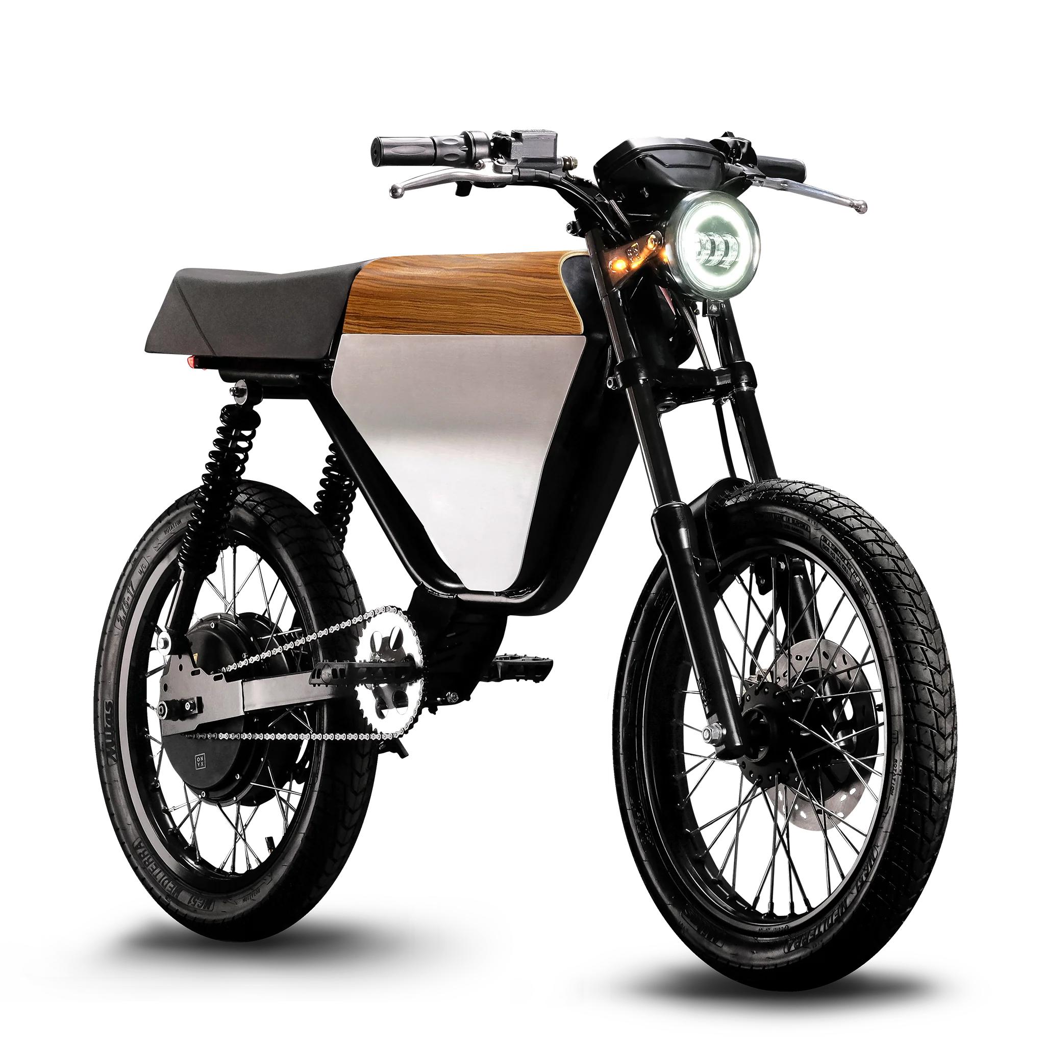 ONYX bikes combine vintage aesthetic with modern engineering, offering a powerful electric bike built to handle both the road and the beaten path. With multiple battery option configurations and a high-performance motor, riders get volts of instant torque and exhilarating speed with instant torque at the twist of the throttle. Designed for long-distance performance, ONYX delivers impressive miles of range, letting you commute, explore, or simply ride for simple fun with stealthy speeds. Shop online and buy with confidence. ONYX models feature premium design, high-quality parts, smooth drive handling, and are built in California for real-world durability. Whether you're looking for an urban bicycle alternative or a versatile ride that can go off-road, ONYX gives you full access to effortless acceleration, easy control, and sleek styling. With fast shipping, excellent build quality, and unmatched power, ONYX is the electric bike built to work, cruise, and explore your world, mile after mile.